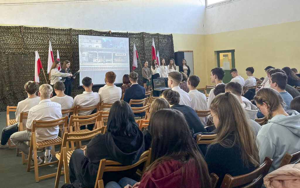 Z tej okazji w naszej szkole odbył się uroczysty apel, podczas którego uczniowie klas 5Te i 1Trd zabrali nas w niezwykłą podróż przez historię Polski – od końca XVIII wieku aż do roku 1918.