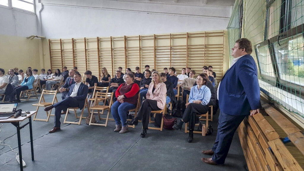 W dniu uroczystości otwarcia naszej nowej pasywnej hali gimnastycznej odbyła się również minikonferencja poświęcona ekologicznym i innowacyjnym projektom realizowanym w szkołach średnich w Strzelcach Op.