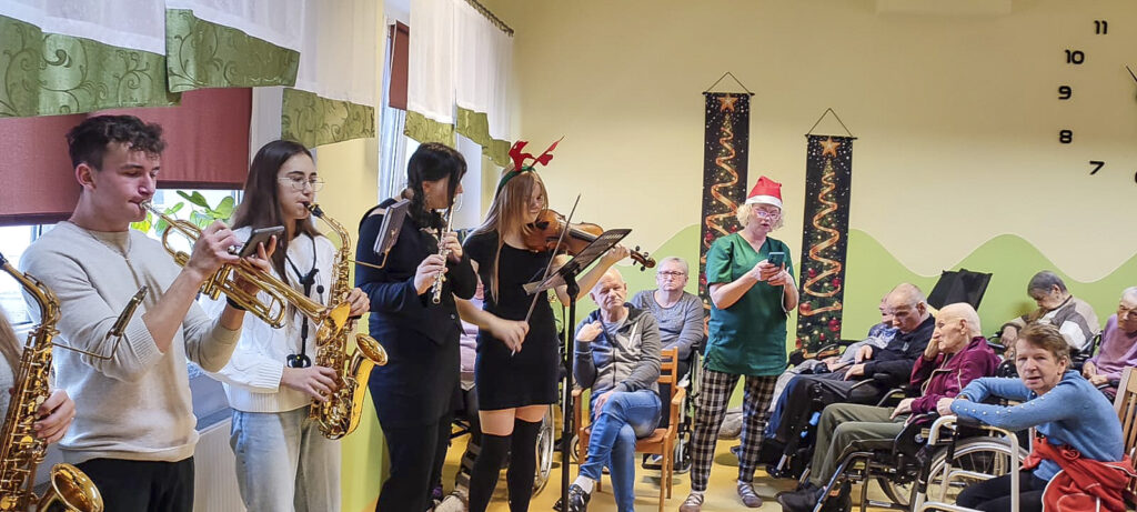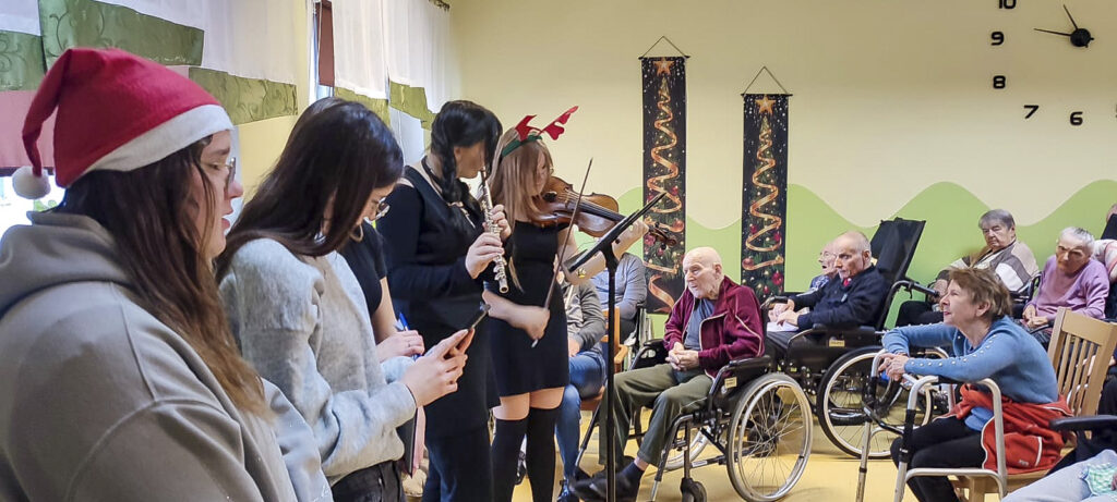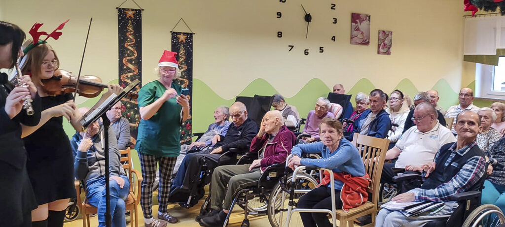 Pensjonariusze DPS z wielkim wzruszeniem i radością włączali się we wspólne śpiewanie, tworząc wraz z uczniami prawdziwą wspólnotę serc i pokoleń. Życzliwa atmosfera, pełna ciepła i serdeczności, sprzyjała refleksji oraz duchowemu przygotowaniu na nadchodzące święta.