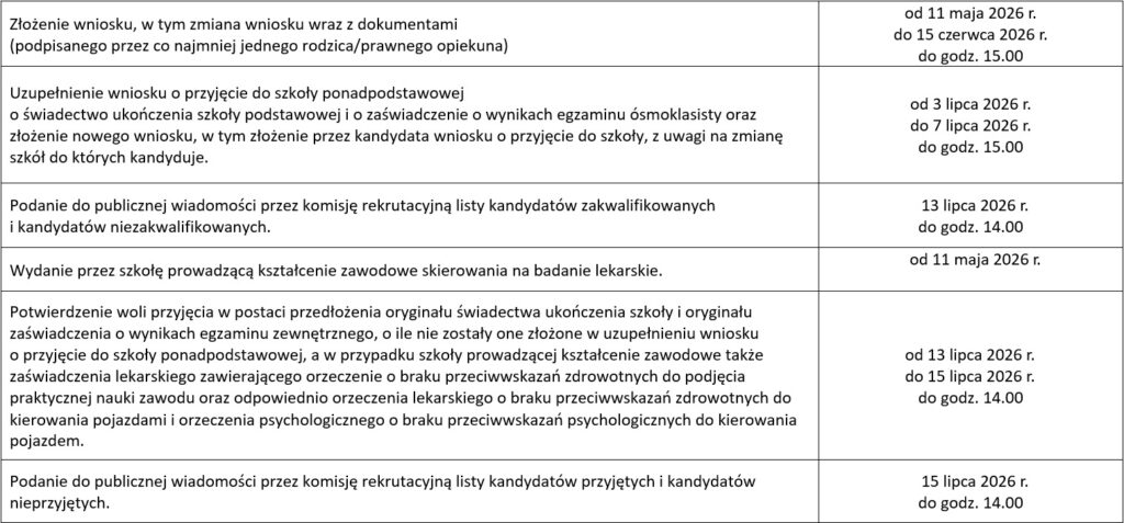 Terminarz rekrutacji na rok szkolny 2026/2027