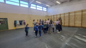 Na zakończenie przedszkolaki znów ruszyły w tany. Wspólny układ muzyczno-ruchowy sprawił, że każdy – duży i mały – wyszedł z zajęć uśmiechnięty, rozgrzany i pełen dobrej energii.