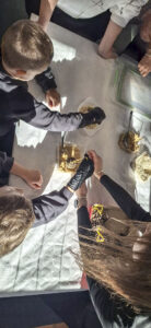 Po umyciu rączek przyszedł czas na zamianę zadań – nikt nie wyszedł bez doświadczenia i sztuki, i ekologii.