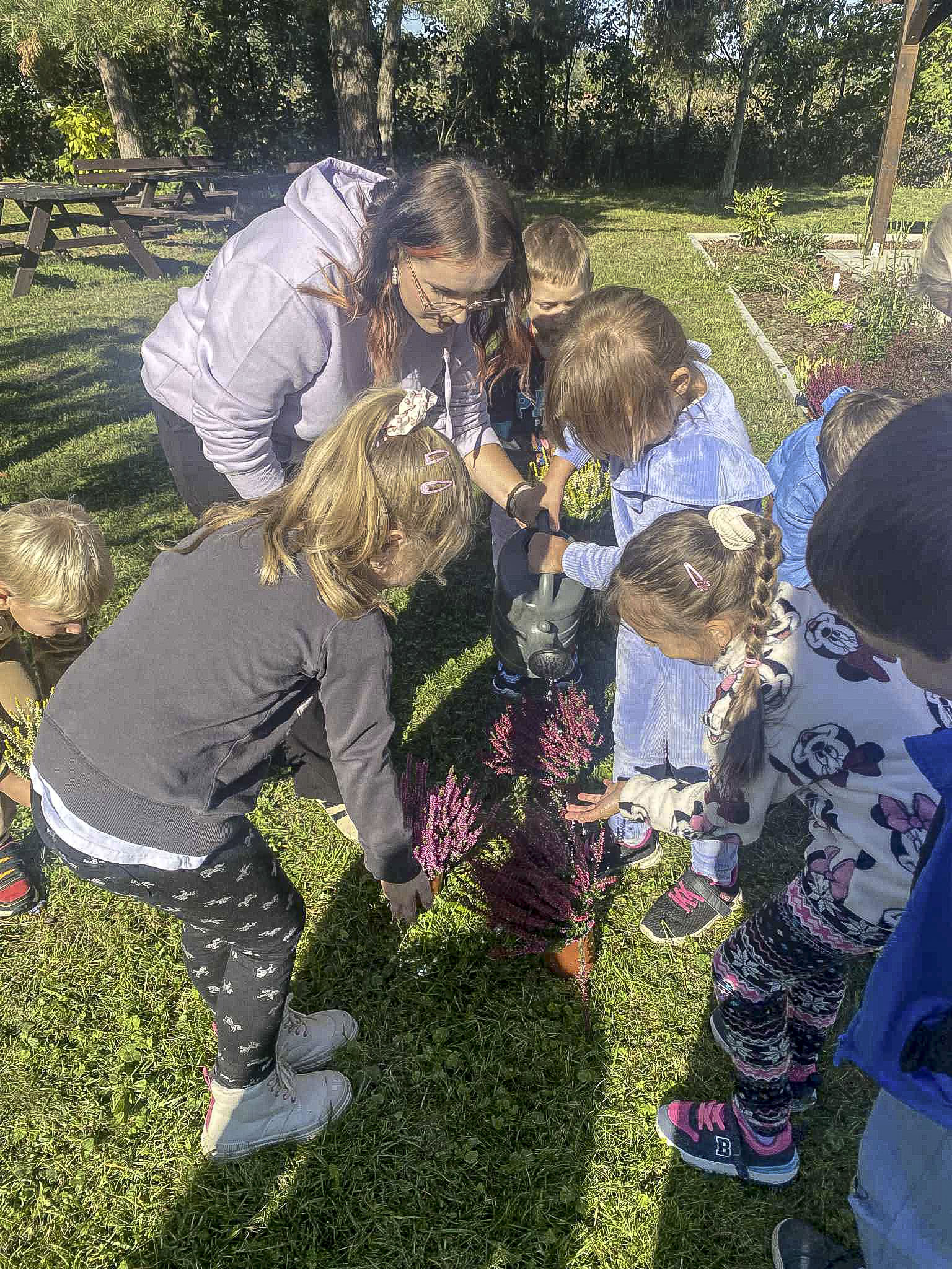 Druga grupa sadziła wrzosy, które dzieci zabrały ze sobą, aby ozdobiły przedszkolne parapety i przypominały o małej misji ogrodniczej.