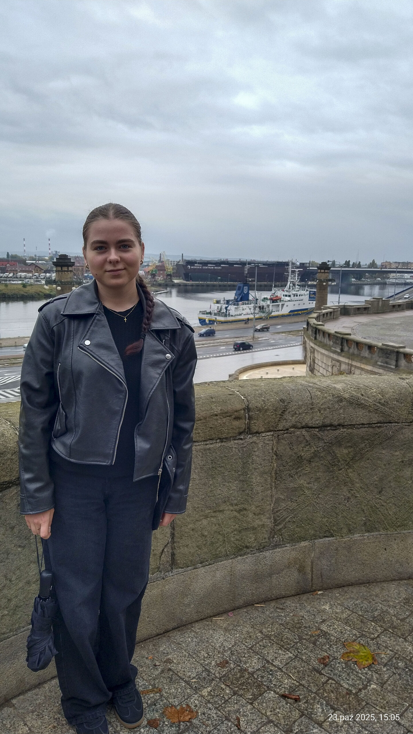 Ciekawe nowego miasta, ciekawe nowych znajomości i tego, co przyniesie ten wyjazd rozpoczęłyśmy swoją przygodę w mieście, które miałyśmy zobaczyć pierwszy raz. Szczecin przywitał nas pochmurną aurą, ale przyjemną temperaturą. Po zakwaterowaniu w Studenckim Domu Marynarza „Pasat”, udałyśmy się na spacer po kampusie Politechniki Morskiej i centrum miasta. Po dotarciu na Wały Chrobrego znane także jako tarasy Hakena, spacerując wzdłuż rzeki podziwiałyśmy monumentalne budowle, takie jak Muzeum Narodowe, Gmach Urzędu Wojewódzkiego, Zachodniopomorski Urząd Marszałkowski, Teatr Współczesny czy Rektorat Politechniki Morskiej oraz zachwyciłyśmy się wspaniałym widokiem na Odrę, Łasztownię, port, statek szkoleniowy „Nawigator” a także Morskie Centrum Nauki. Spacerując wzdłuż Bulwaru Piastowskiego podziwiałyśmy Dżwigozaury, czyli ogromne, kolorowe dźwigi portowe będące symbolem przemysłowej historii Szczecina. Spacerując ulicami miasta dotarłyśmy do budynku Filharmonii im. Mieczysława Karłowicza, który jako perełka nowoczesnej architektury zachwyca swoją unikalną formą, minęłyśmy Centrum Dialogu Przełomy i dotarłyśmy do galerii handlowej „Galaxy” i pięknego parku.