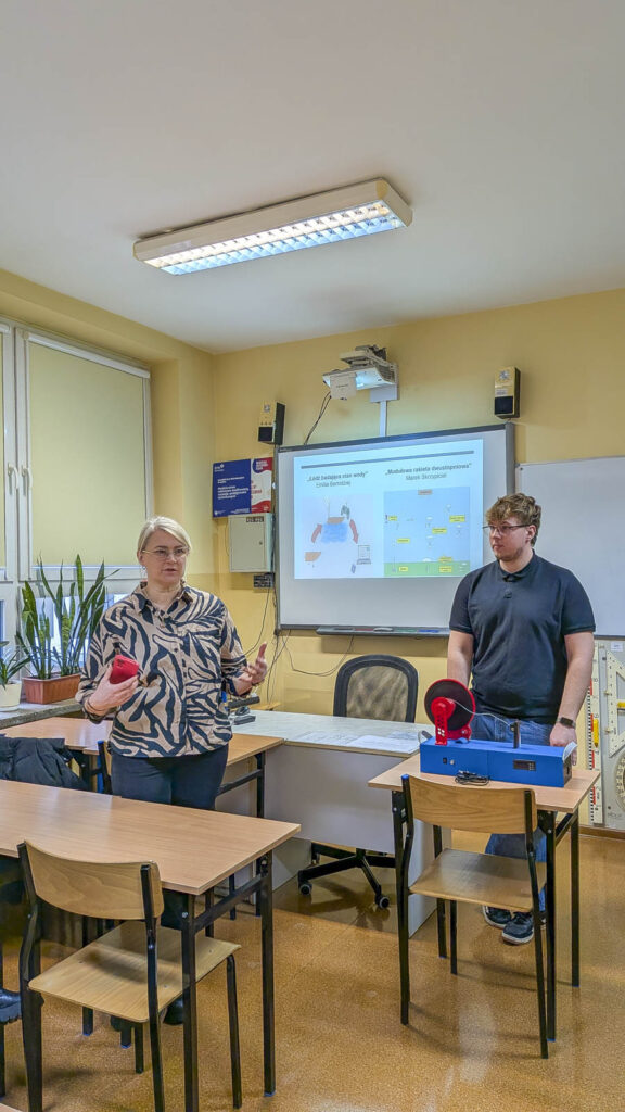 Brajan Mlotek z klasy 4 Ta – technik mechatronik – na co dzień, zgłębia tajniki mikroprocesorów, zjawisk falowych, struktury materiału czy programowania, a dodatkowo jest laureatem III edycji programu „Inżynierowie Przyszłości”, w ramach którego realizuje autorski projekt: „Drugie życie plastikowej butelki”.