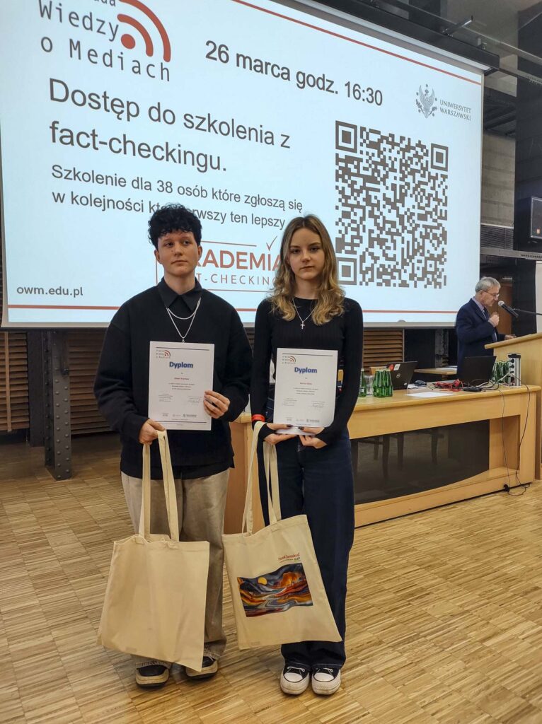 Hanna Galas i Oliwia Krymzer z klasy 4 graficznej w dniach 20–21 marca br. reprezentowały naszą szkołę w etapie centralnym XII Ogólnopolskiej Olimpiady Wiedzy o Mediach, organizowanej przez Wydział Dziennikarstwa, Informacji i Bibliologii Uniwersytetu Warszawskiego.